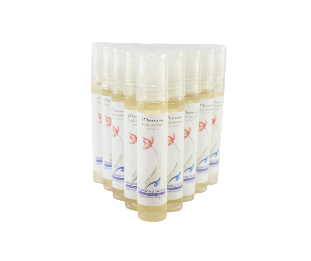 Menzang," which means "Good Medicine," is a line of pain-relieving herbal products formulated based on ancient texts and developed under the guidance of Drungtshos, the traditional medicine doctors of Bhutan.