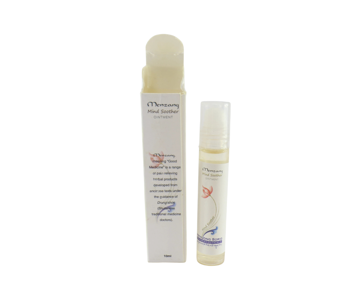 Menzang," which means "Good Medicine," is a line of pain-relieving herbal products formulated based on ancient texts and developed under the guidance of Drungtshos, the traditional medicine doctors of Bhutan.